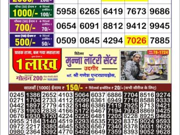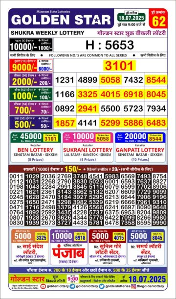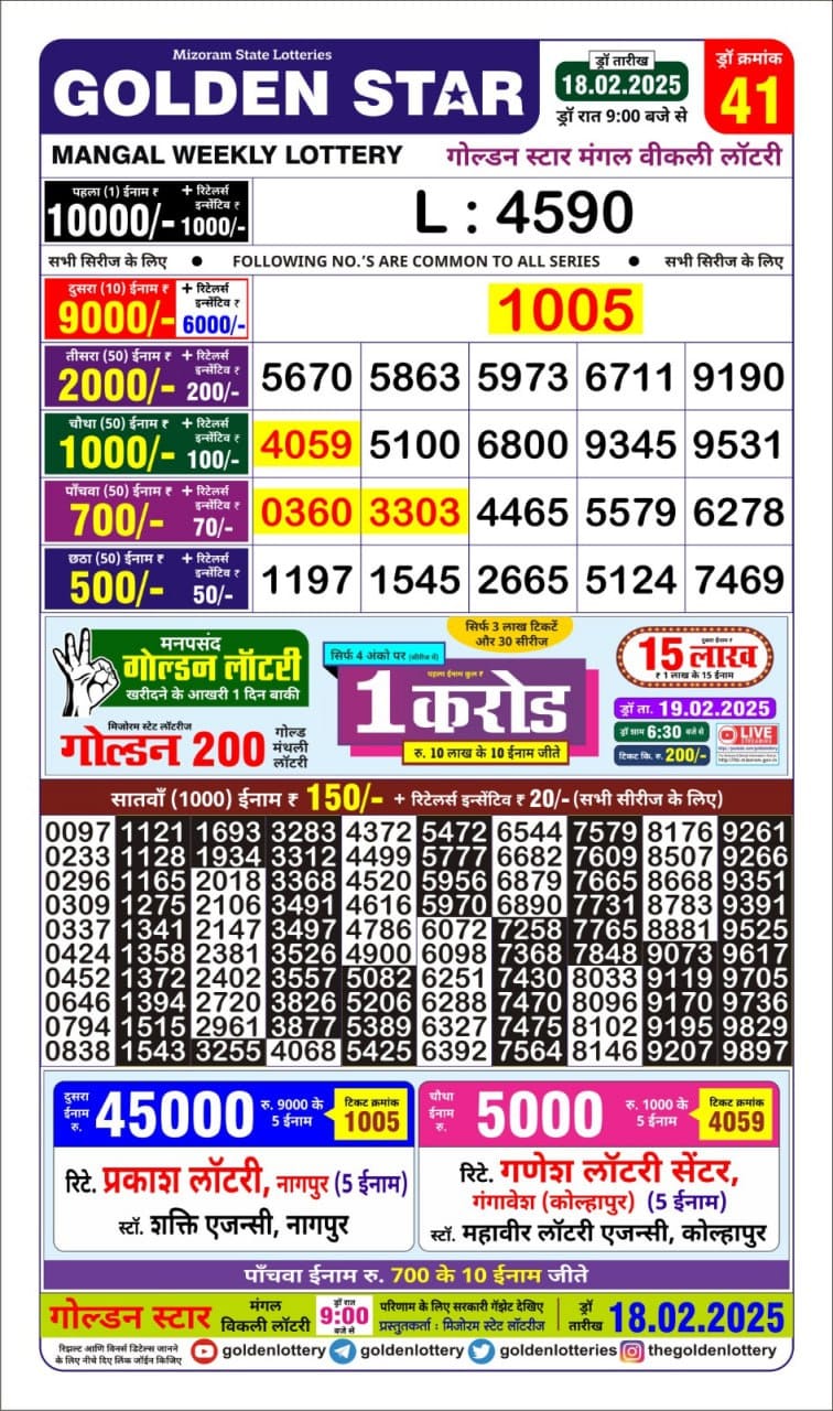 गोल्डन लाटरी का रात 9 बजे का रिज़ल्ट दिनांक 18.10.25