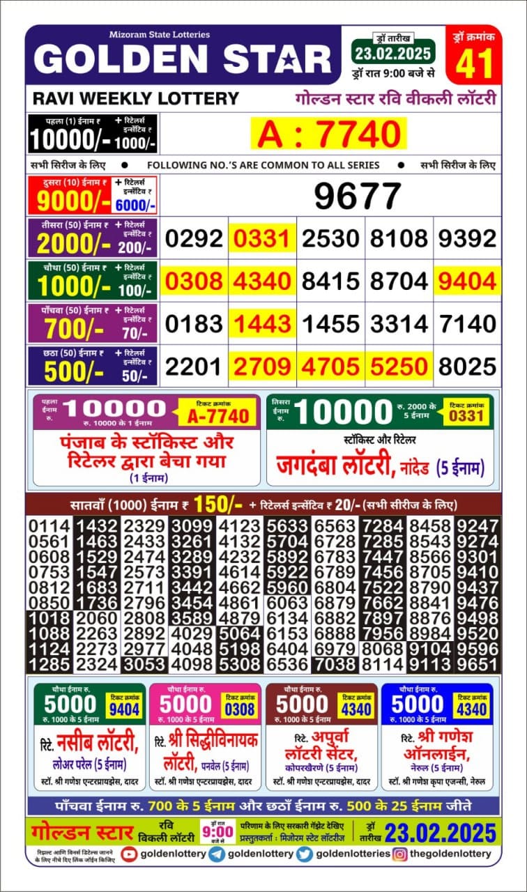 गोल्डन लाटरी का रात 9 बजे का रिज़ल्ट दिनांक 23.11.25
