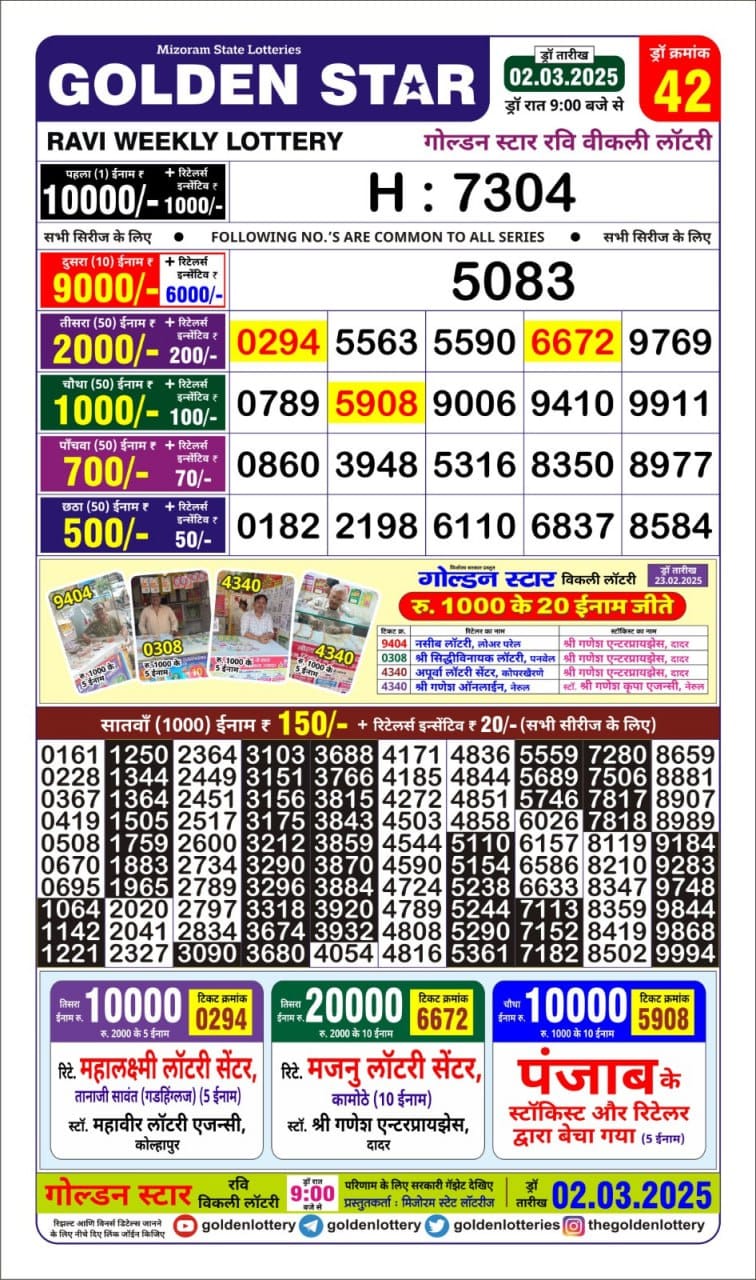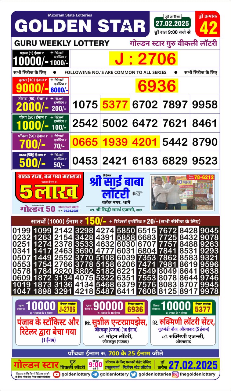 गोल्डन लाटरी का रात 9 बजे का रिज़ल्ट दिनांक 02.12.25