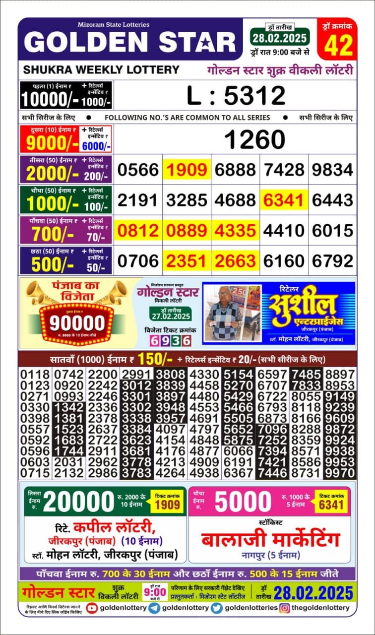 गोल्डन लाटरी का रात 9 बजे का रिज़ल्ट दिनांक 28.11.25