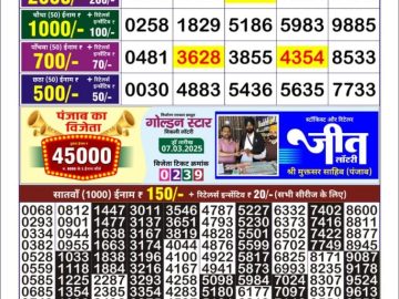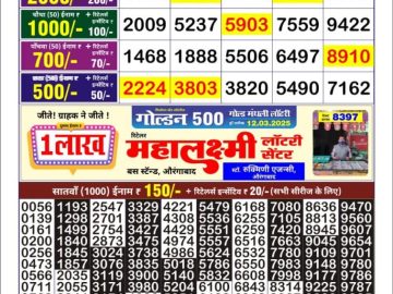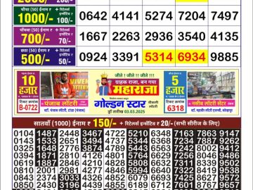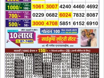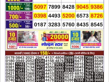 गोल्डन लाटरी का रात 9 बजे का रिज़ल्ट दिनांक 03.11.25