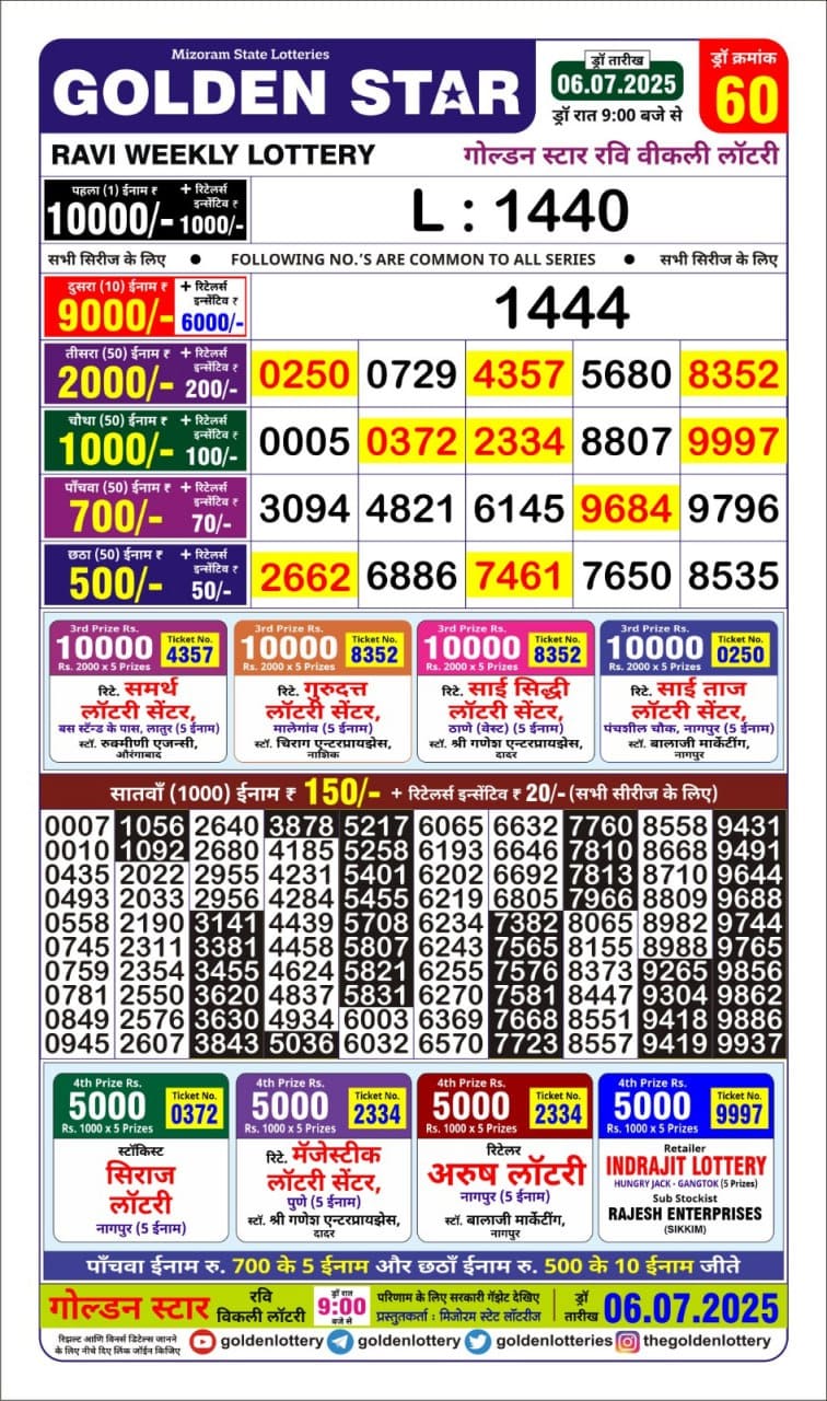 गोल्डन लाटरी का रात 9 बजे का रिज़ल्ट दिनांक 06.11.25