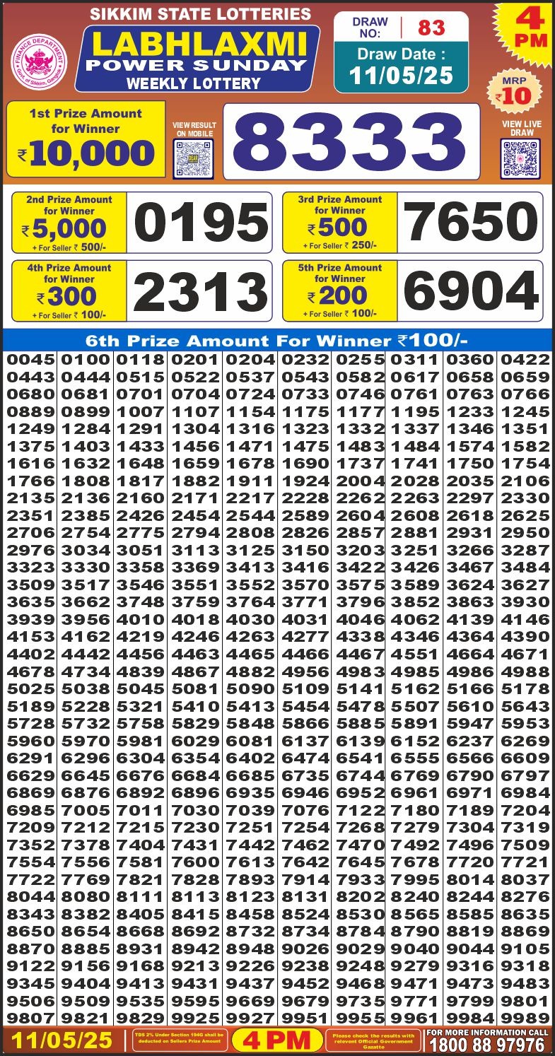 लाभ लक्ष्मी लाटरी 4 बजे दिनांक 06.10.25 का रिजल्ट
