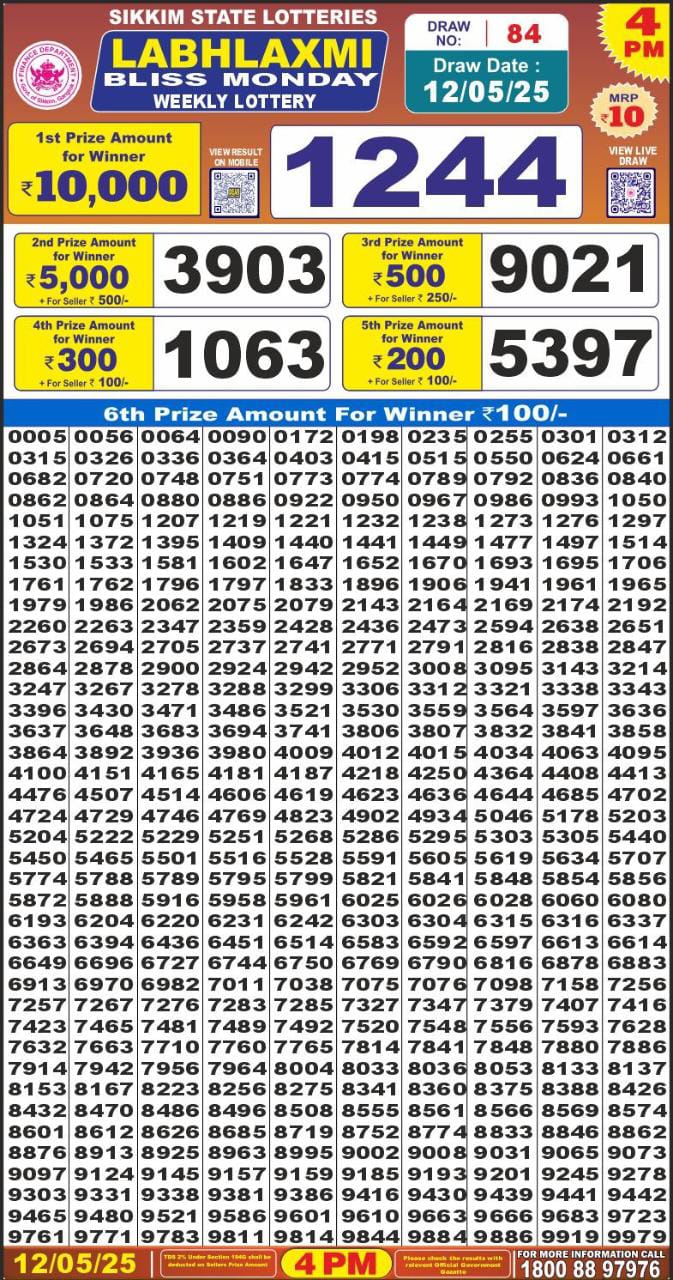 लाभ लक्ष्मी लाटरी 4 बजे दिनांक 10.12.25 का रिजल्ट