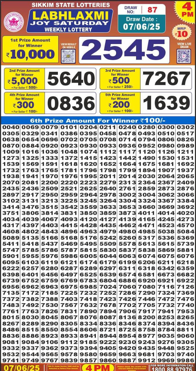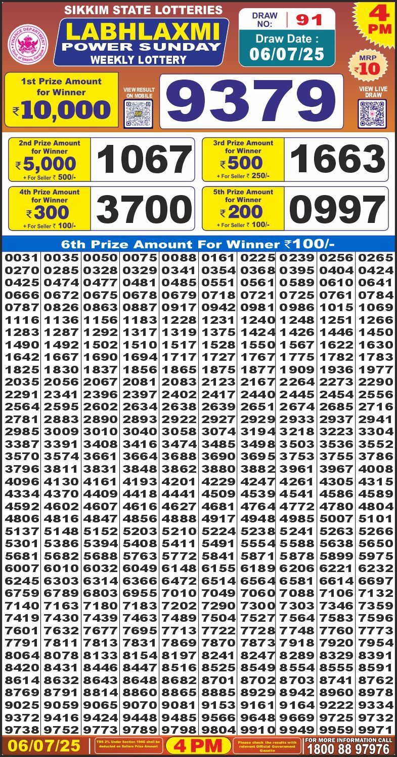 लाभ लक्ष्मी लाटरी 4 बजे दिनांक 06.12.25 का रिजल्ट