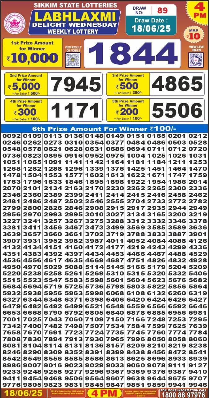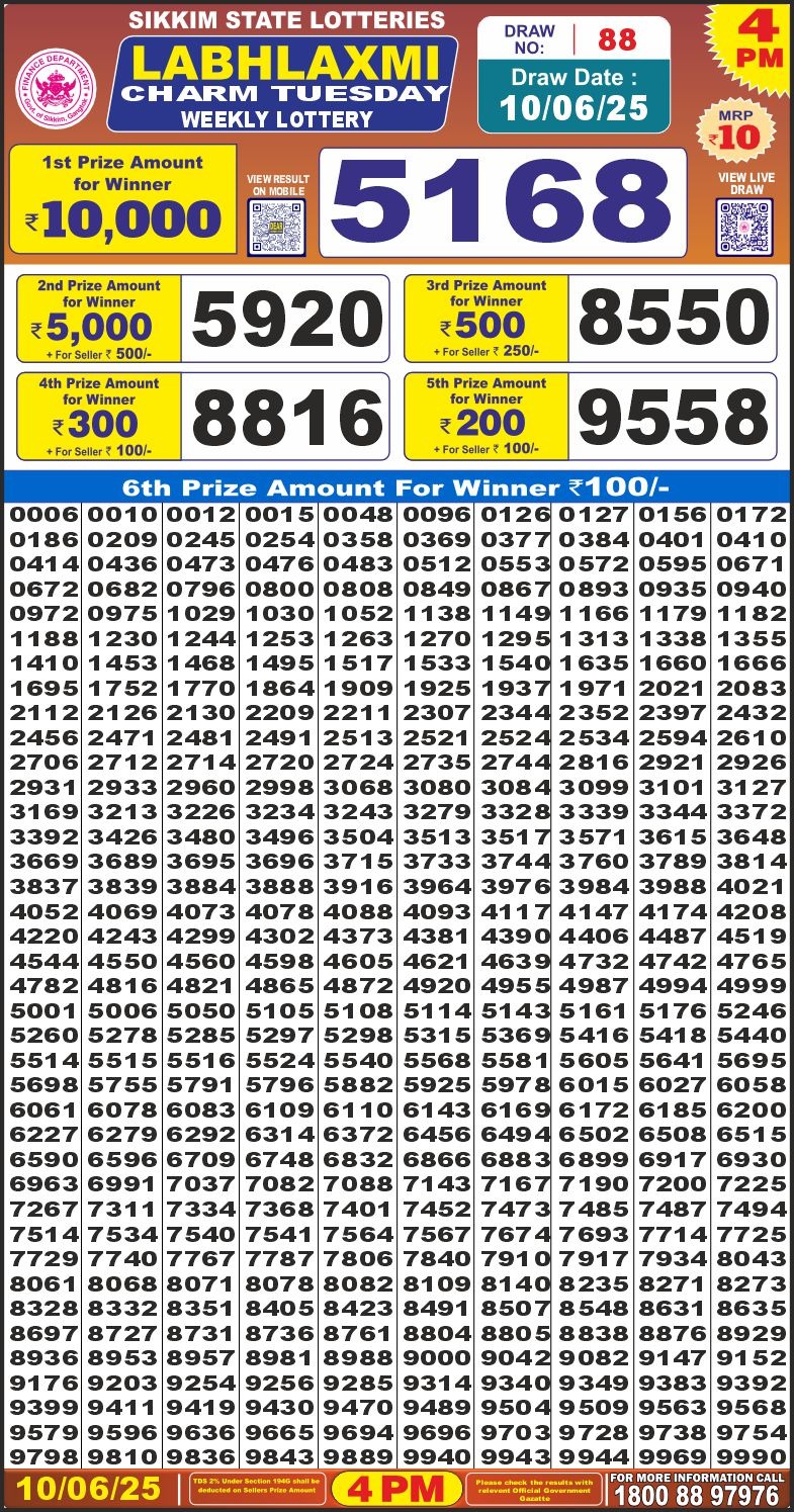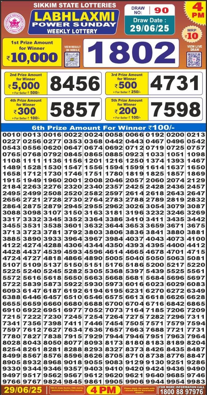लाभ लक्ष्मी लाटरी 4 बजे दिनांक 10.10.25 का रिजल्ट