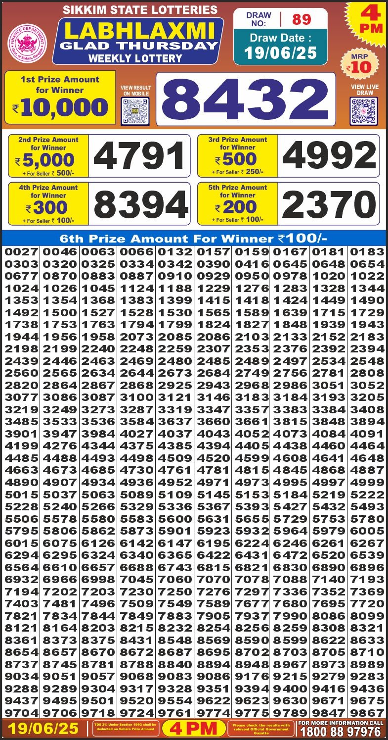 लाभ लक्ष्मी लाटरी 4 बजे दिनांक 19.10.25 का रिजल्ट