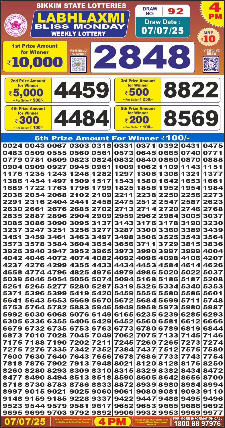 लाभ लक्ष्मी लाटरी 4 बजे दिनांक 07.12.25 का रिजल्ट
