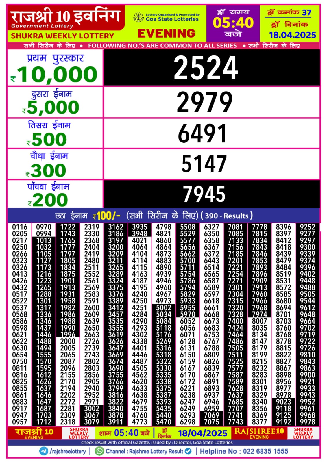 Category: Rajshree 18.40PM Result
