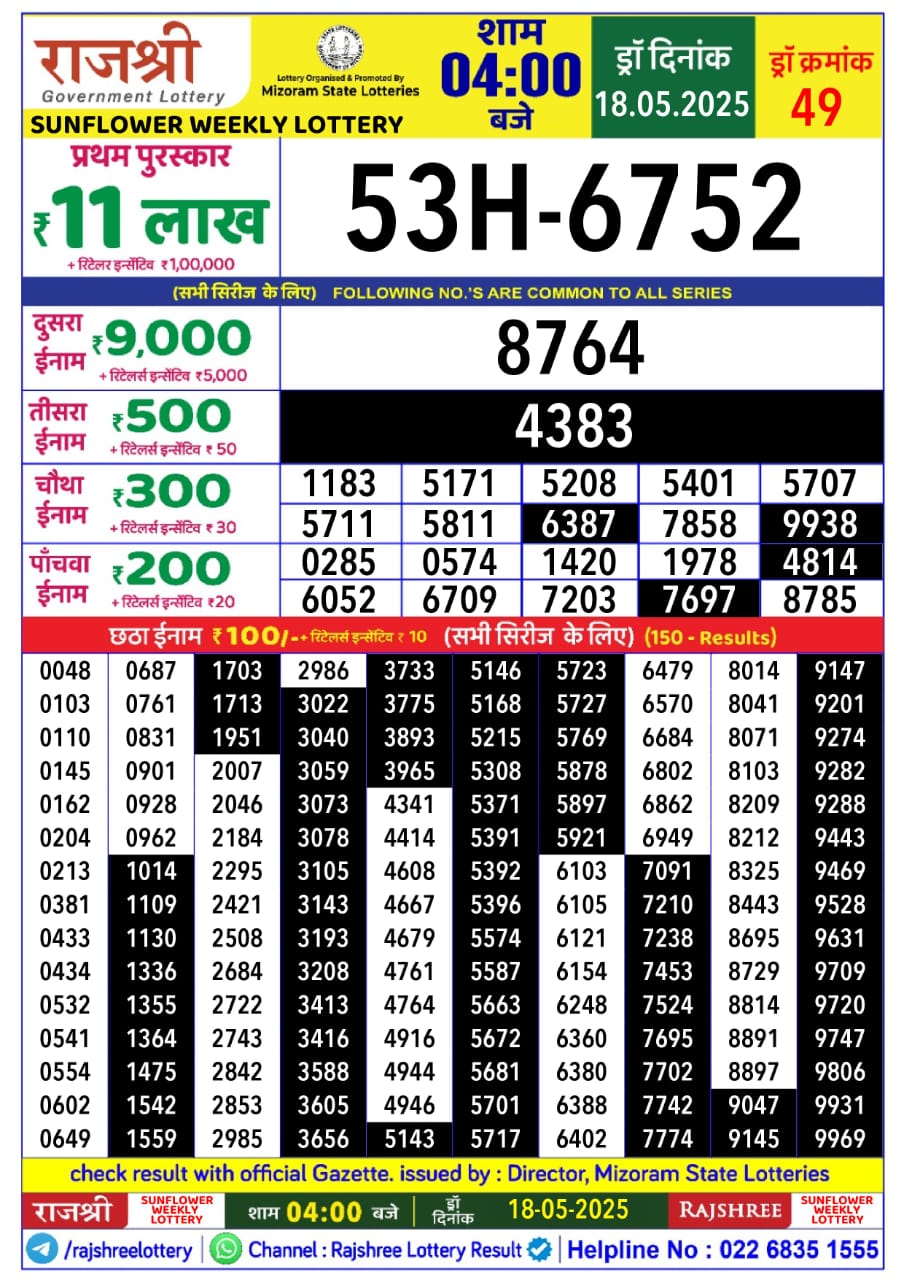 राजश्री लाटरी का 4 बजे का रिज़ल्ट दिनांक 18.11.25
