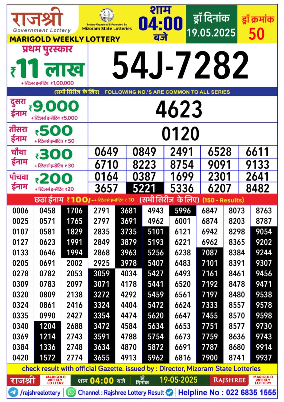 राजश्री लाटरी का 4 बजे का रिज़ल्ट दिनांक 19.11.25