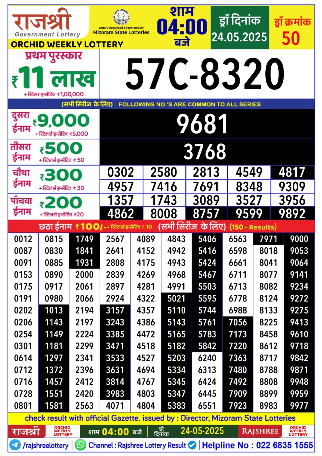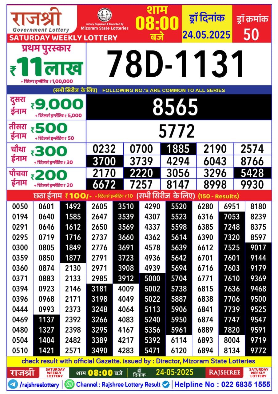 राजश्री लाटरी का 4 बजे का रिज़ल्ट दिनांक 24.11.25