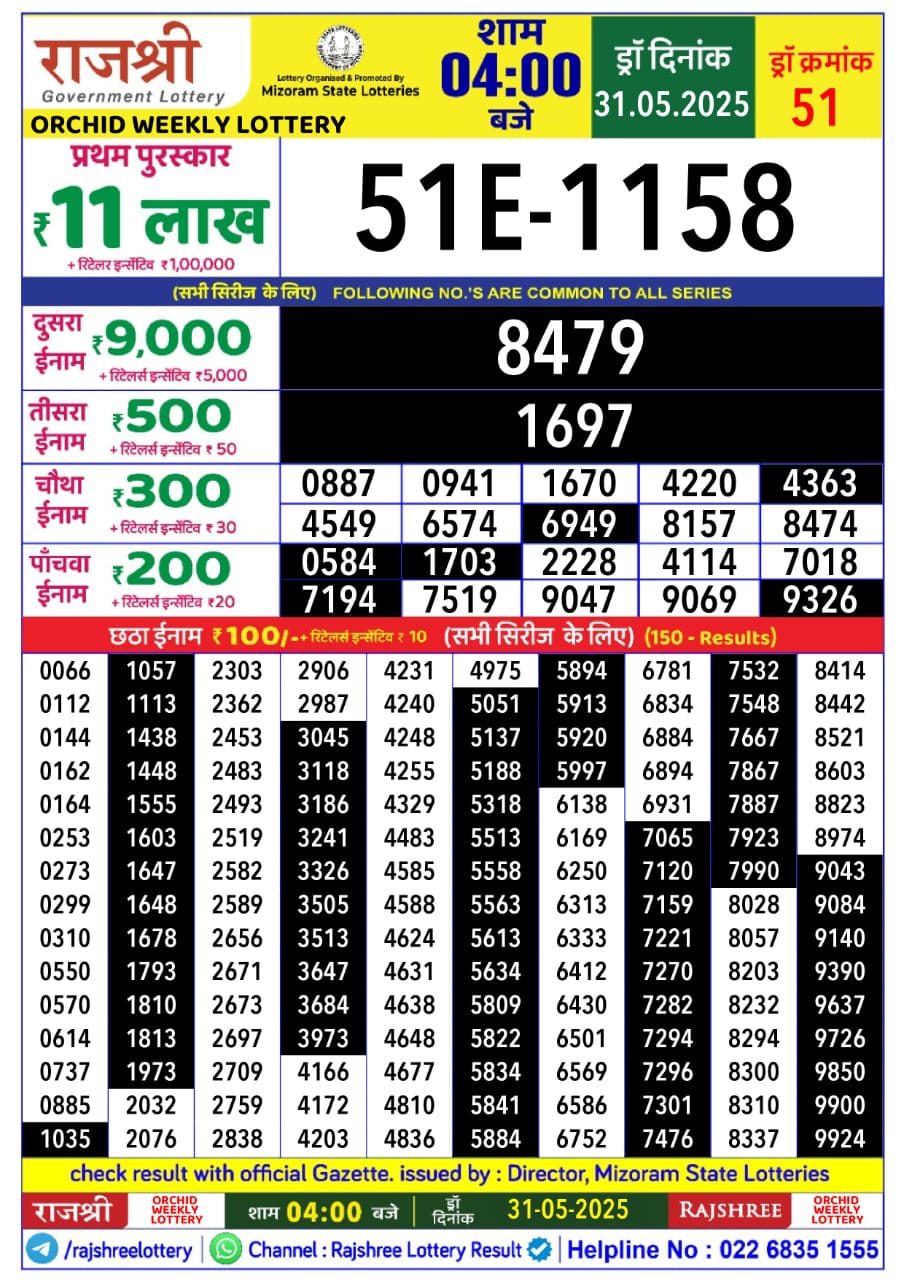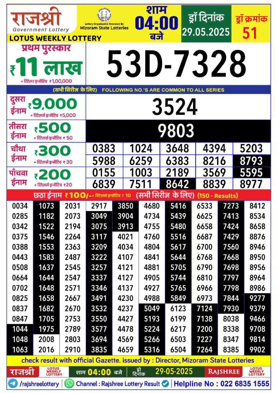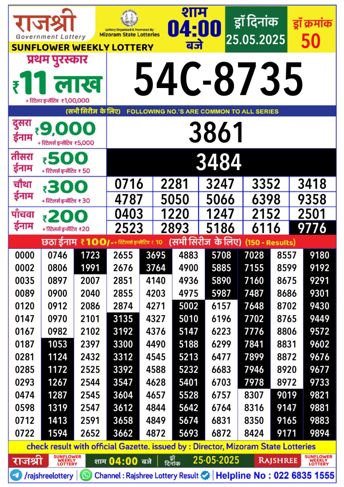 राजश्री लाटरी का 4 बजे का रिज़ल्ट दिनांक 25.11.25