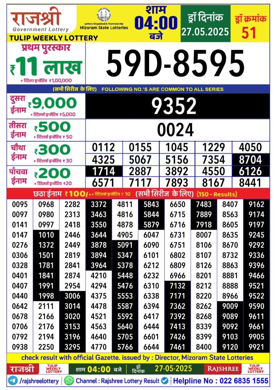 राजश्री लाटरी का 4 बजे का रिज़ल्ट दिनांक 27.11.25