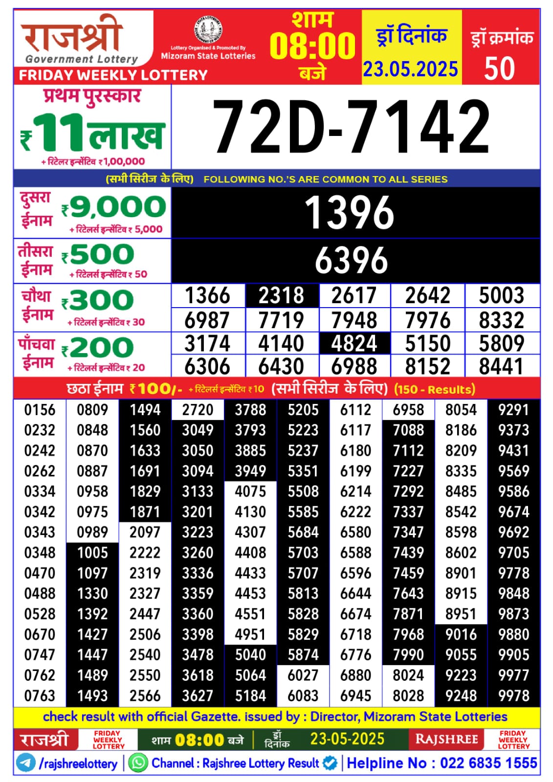 राजश्री लाटरी का रात 8 बजे का रिज़ल्ट दिनांक 23.11.25
