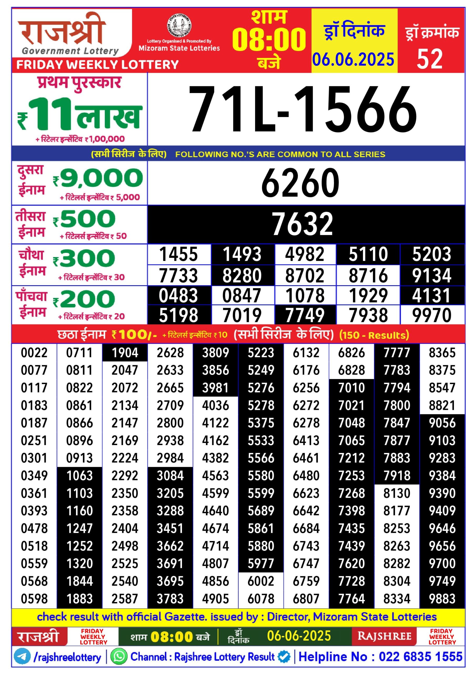 राजश्री लाटरी का रात 8 बजे का रिज़ल्ट दिनांक 06.11.25