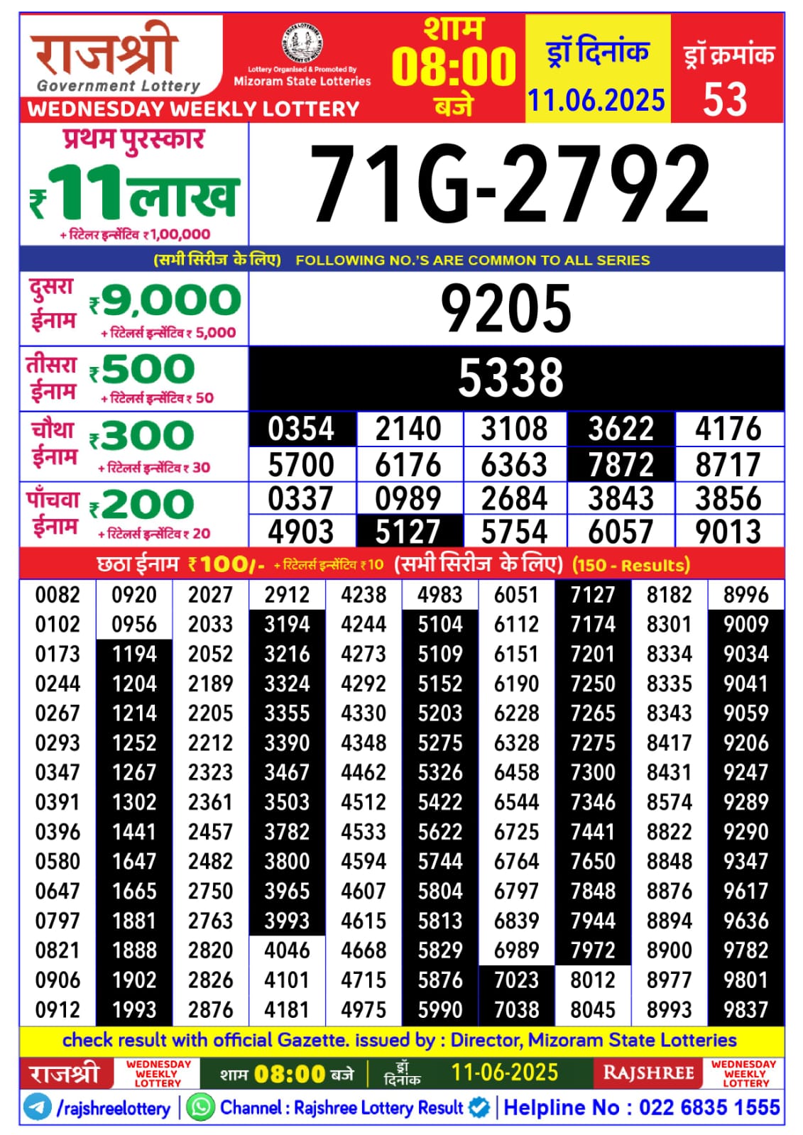 राजश्री लाटरी का रात 8 बजे का रिज़ल्ट दिनांक 11.11.25