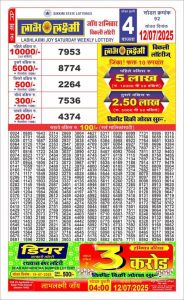 लाभ लक्ष्मी लाटरी 4 बजे दिनांक 07.12.25 का रिजल्ट