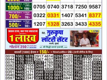 गोल्डन लाटरी का रात 9 बजे का रिज़ल्ट दिनांक 29.11.25