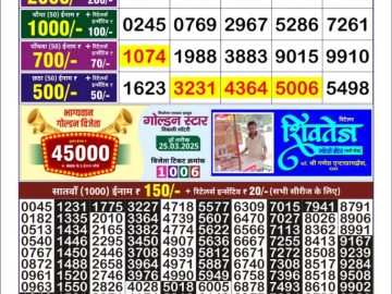 राजश्री लाटरी का दोपहर 1 बजे का रिज़ल्ट दिनांक 01.12.25