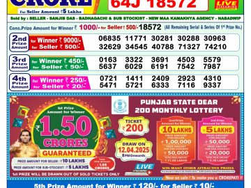 पंजाब 50 लाटरी का शाम 6 बजे का रिज़ल्ट दिनांक 01.12.25