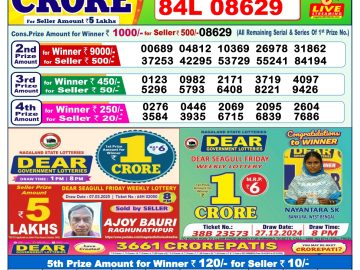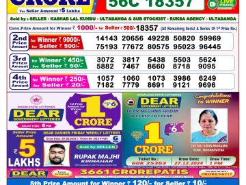 डिअर लाटरी का 1 बजे का रिज़ल्ट दिनांक 01.12.25